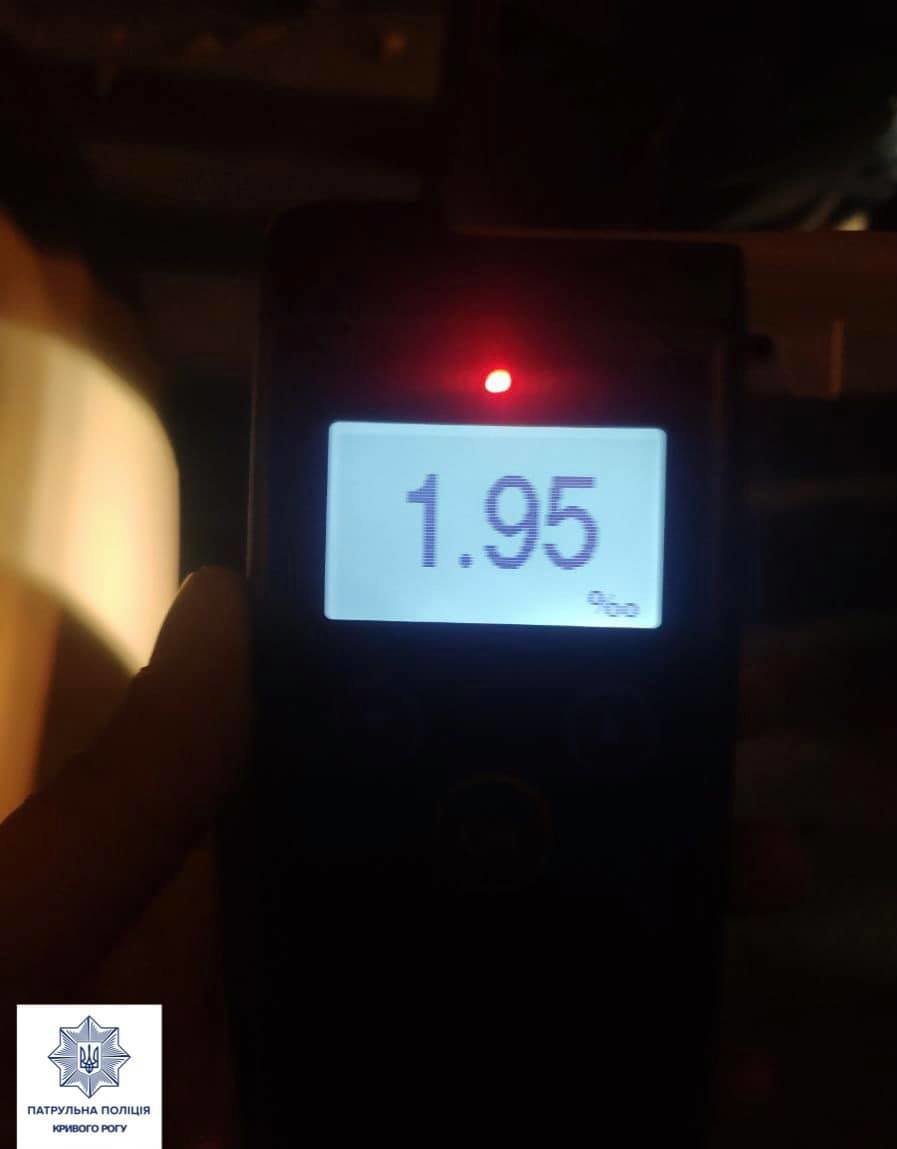 Как сообщает пресс-служба полка патрульной полиции (ППП) в Кривом Роге, водитель согласился пройти осмотр в установленном законом порядке на состояние опьянения с помощью газоонализатора "драгер", результат показал 1,95 промилле.