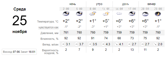 Среда, 25 ноября