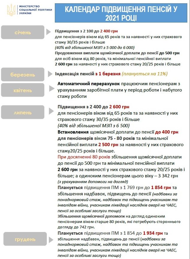 Минсоцполитики составило информационный календарь повышений пенсий, которые состоятся в следующем году по результатам решений, принятых правительством.