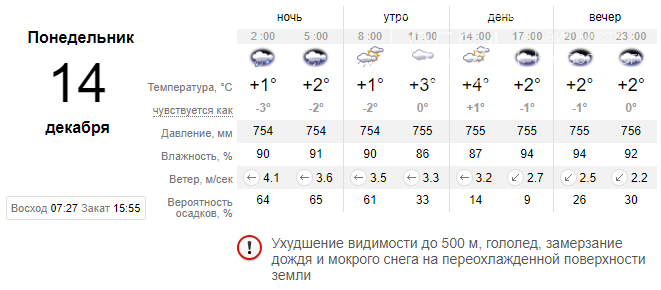 Неделя начнется с гололеда и тумана. В остальные дни - наблюдается лишь облачность. Никаких низких температурных перепадов или сильных осадков не предвидится. Ветер также умеренный, с порывами не более 4-5 м/с.