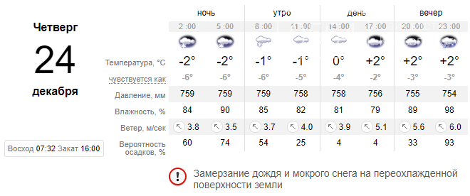 Предупреждение о погодных условиях: на завтра ожидается гололед и сильный ветер