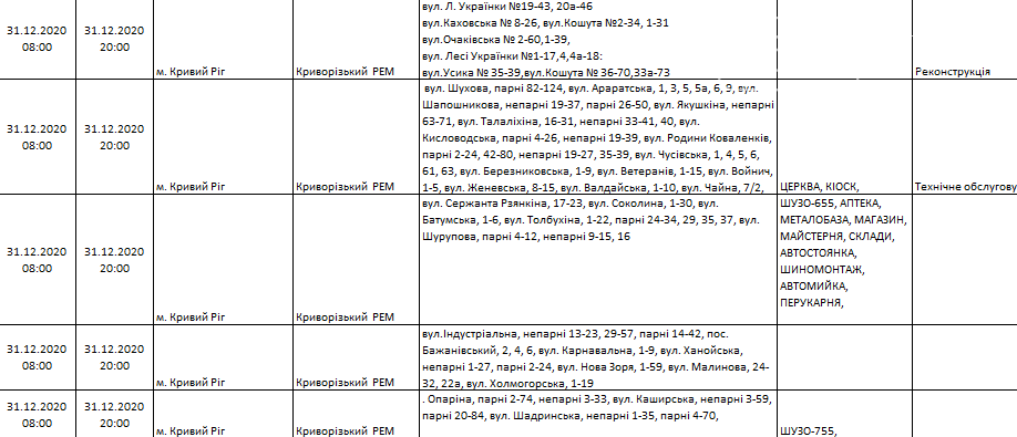 Ремонтные работы и отключение света: завтрашний график по Кривому Рогу, - АДРЕСА