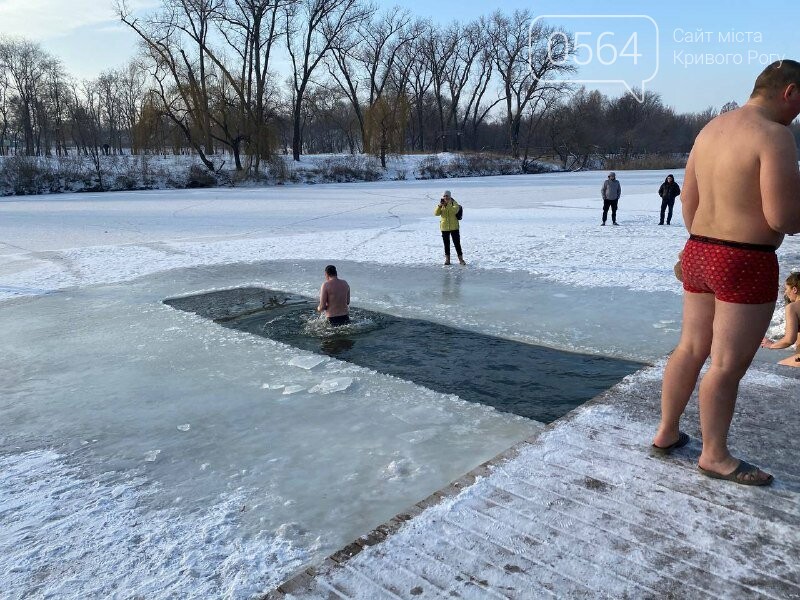 Сегодня, 19 января, на пляже у водоема в парке им.Федора Мершавцева сотни криворожан уже искупались в ледяной воде.