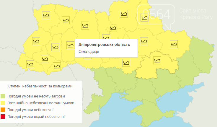 Согласно данным Укргидрометцентра, на 10 февраля объявлено предупреждение о негативных метеорологических явленияхна дорогах Днепропетровской области сохраняется опасность гололедицы. Уровень опасности I (желтый).
