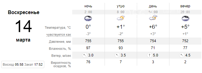 Воскресенье, 14 марта
