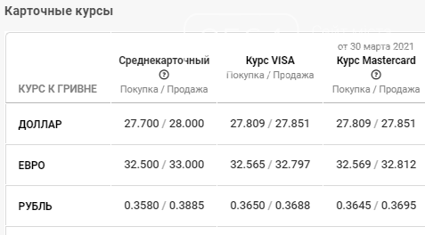 Карточный курс доллара и евро