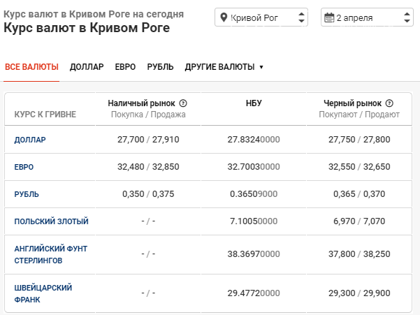 Утром, 2 апреля, Нацбанк утвердил официальный курс гривны относительно иностранных валют.