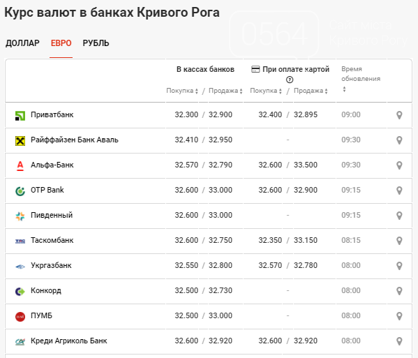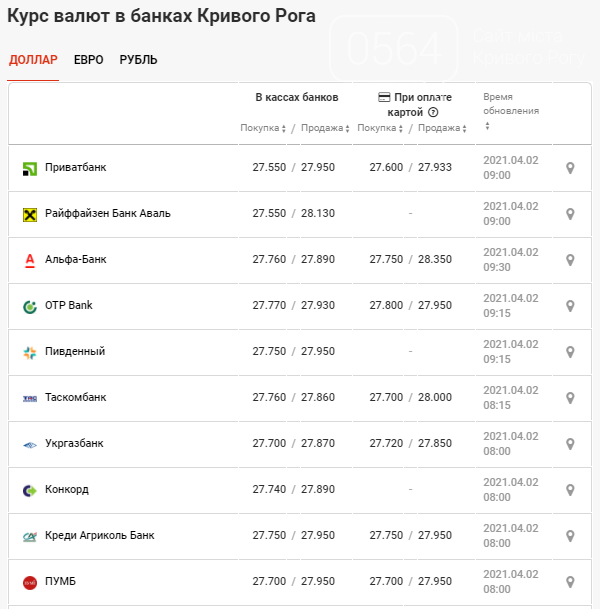 Как сообщает сайт 0564.ua со ссылкой на пресс-службу Минфина, Национальный банк Украины установил курс гривны в Кривом Роге на уровне 27,8324 гривен за доллар и 32,7003 гривен за евро.
