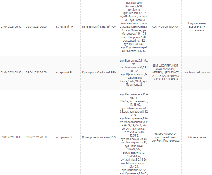 Читайте также: В Кривом Роге с 12 по 16 апреля будет прекращено газоснабжение, - АДРЕСА