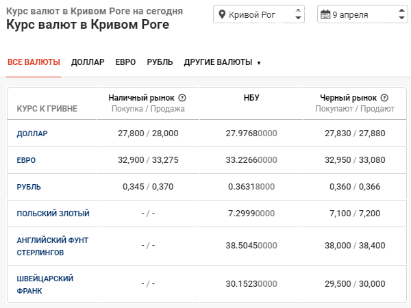 Утром, 9 апреля, Нацбанк утвердил официальный курс гривны относительно иностранных валют.