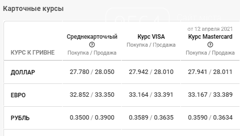 Карточный курс доллара и евро