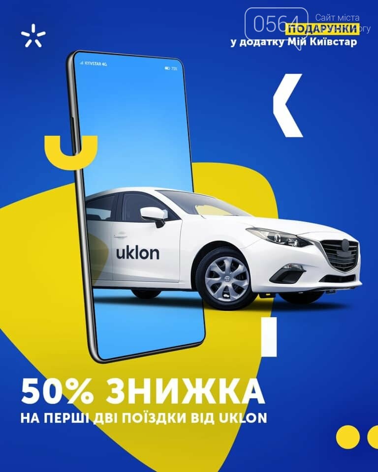 До конца мая все абоненты оператора, которые пользуются приложением для самообслуживания «Мой Киевстар» или загрузят его, смогут получить скидку до 50% на первые две поездки с Uklon.