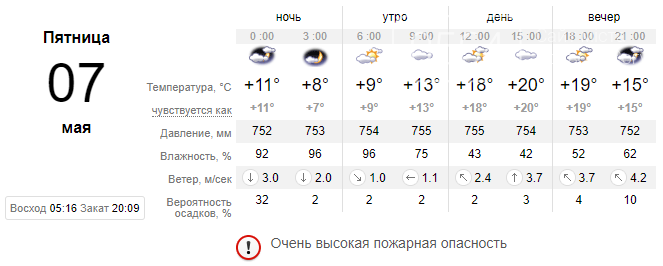 На завтра по области передают пасмурность, в ночной период возможно резкое похолодание. В течение суток ветер порывистый, а температура до 19-20 °С с отметкой "плюс". Не стоит забывать и о чрезвычайной пожароопасности, которая будет актуальна в ближайшие дни.