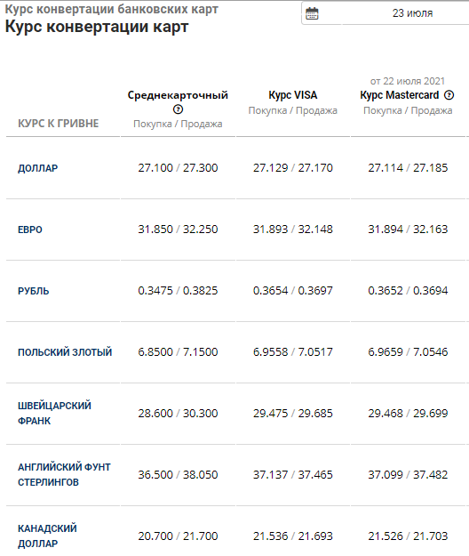 Карточный курс валют