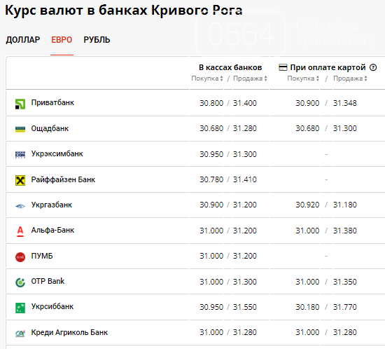 В банках Кривого Рога курс доллара установлен следующий - в пределах 26,550 - 26,750 гривен. Что касательно курса евро, то он составил 31,000 - 31,300 гривен.