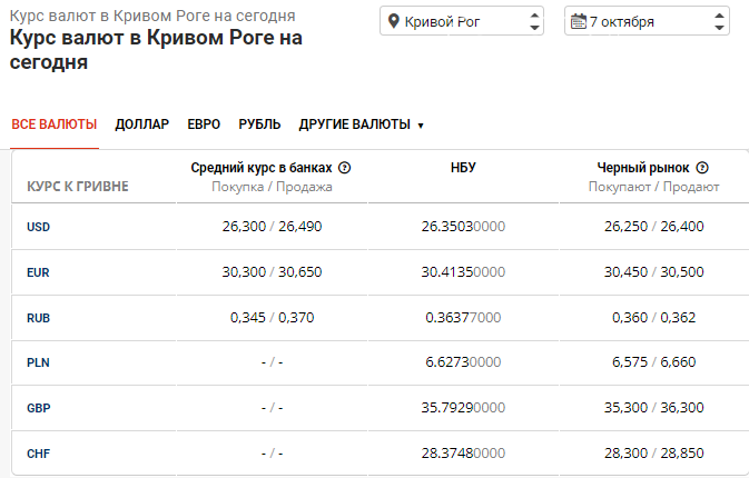 По состоянию на утро 7 октября Нацбанк установил официальный курс доллара в Кривом Роге а также утвердил новую стоимость гривны относительно иностранных валют.
