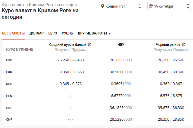 Курс доллара в Кривом Роге: актуальная стоимость в банках на 19 октября