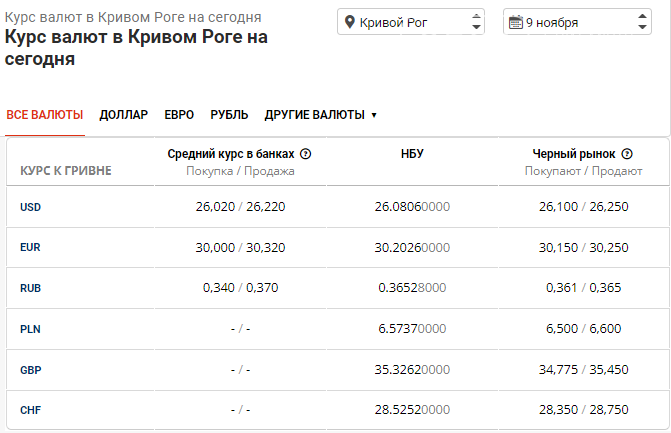 По состоянию на утро 9 ноября Нацбанк утвердил официальный курс доллара в Кривом Роге и новую стоимость гривны относительно иностранных валют.
