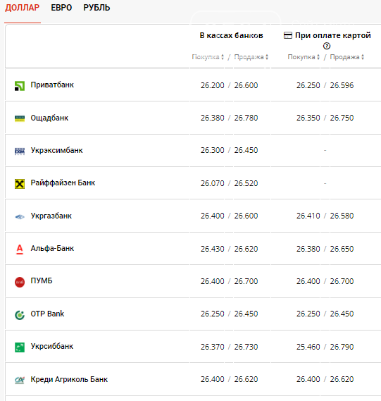 В банках Кривого Рога курс доллара установлен следующий - в пределах 26,380 - 26,590 гривен. Что касательно курса евро, то он составил 29,855 - 30,225 гривен.