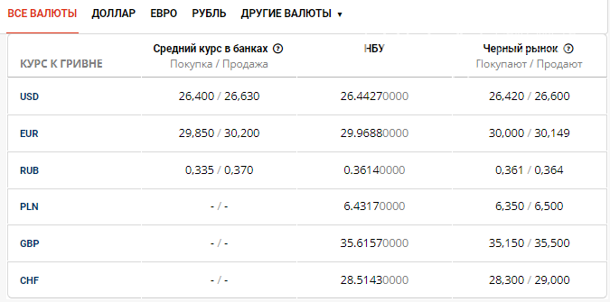 Как сообщает сайт 0564.ua со ссылкой на пресс-службу Минфина, Национальный банк Украины установил курс гривны в Кривом Роге на уровне 26,4427 гривен за доллар и 29,9688 гривен за евро.