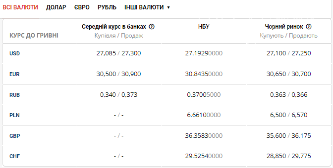 Как сообщает сайт 0564.ua со ссылкой на пресс-службу Минфина, Национальный банк Украины установил курс гривны в Кривом Роге на уровне 27,1929 гривен за доллар и 30,8435 гривен за евро.