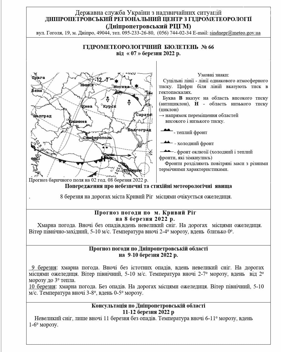 Гідрометеорологічний бюлетень опублікував департамент розвитку інфраструктури міста Криворізького міськвиконкому.