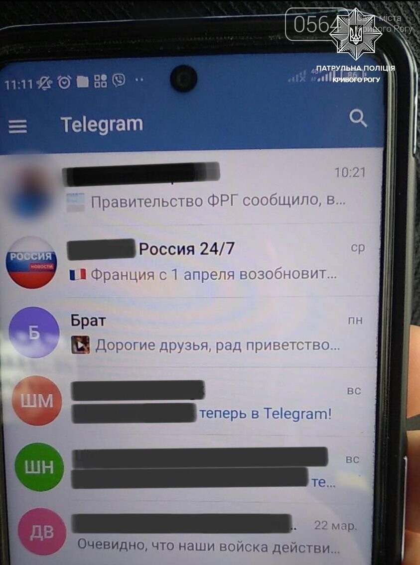 Сьогодні, 31 березня, під час патрулювання інспектори отримали повідомлення про чоловіка, який висловлює заклики на користь агресора. Під час перевірки його телефона з'ясувалось, що він підтримує проросійські рухи.