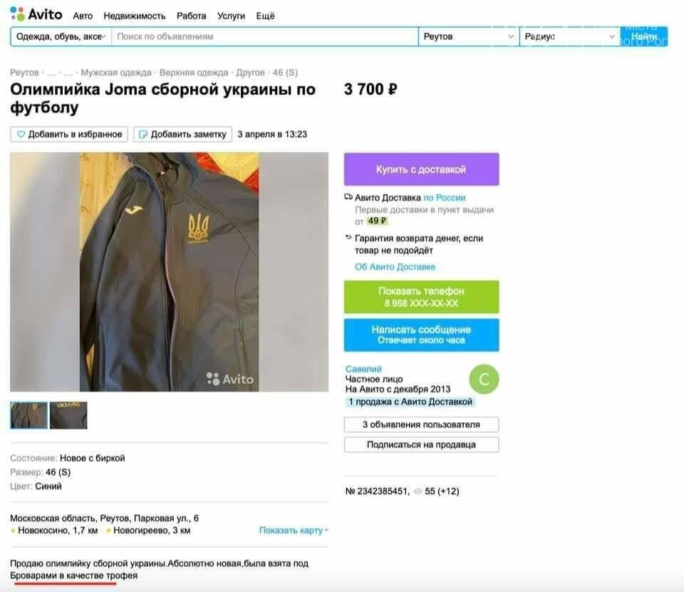 рашистські мародери продають вкрадену олімпійку збірної України на сайті оголошень