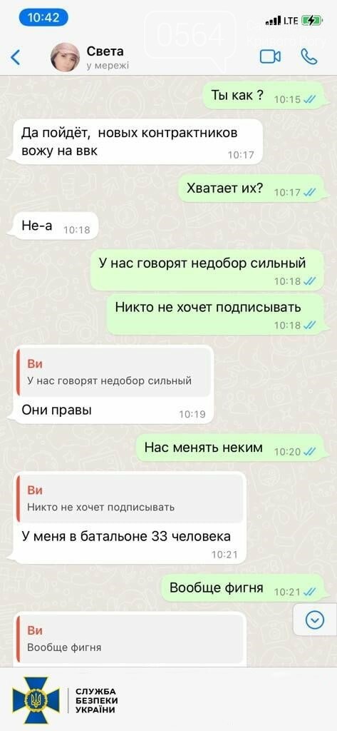 Про це свідчить переписка контрактника зі співробітницею головного управління росгвардії по Краснодарському краю яку отримала СБУ.