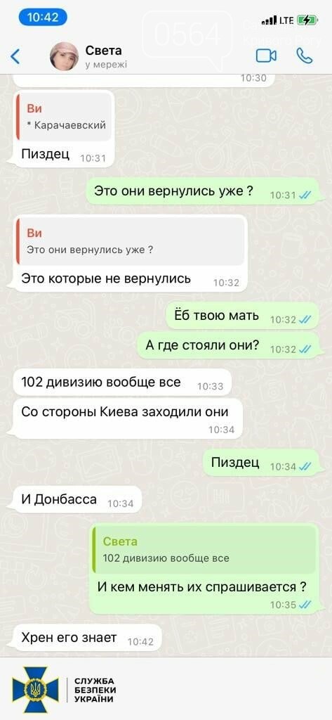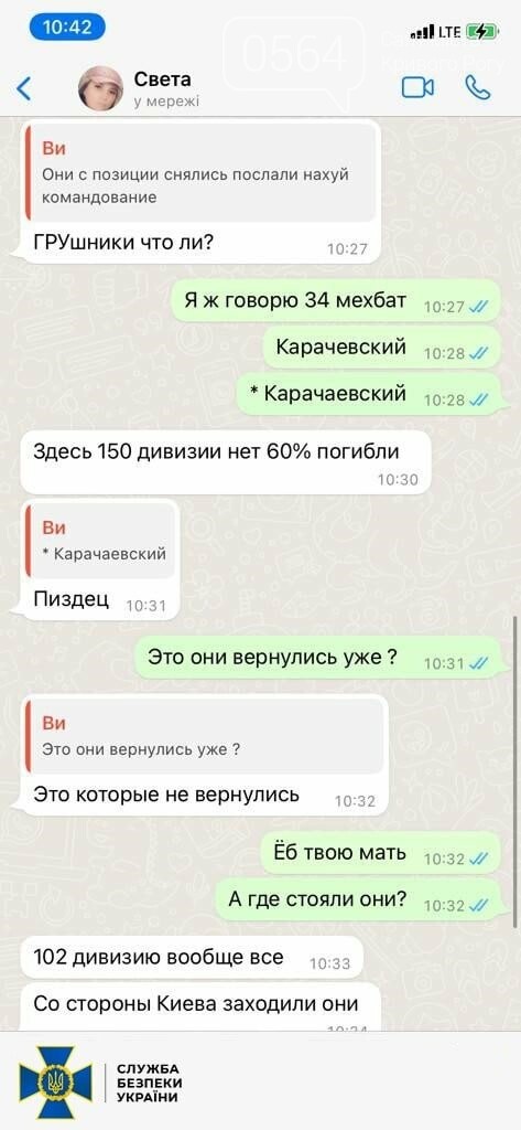 У відповідь окупант, який зараз перебуває на Херсонщині, скаржиться на обстановку на фронті: загарбники зазнають значних втрат. «34 мехбат Карачаевский полностью разъ*бали. 80% личного состава уничтожили. Они с позиции снялись, послали на*уй командование», – пише окупант.