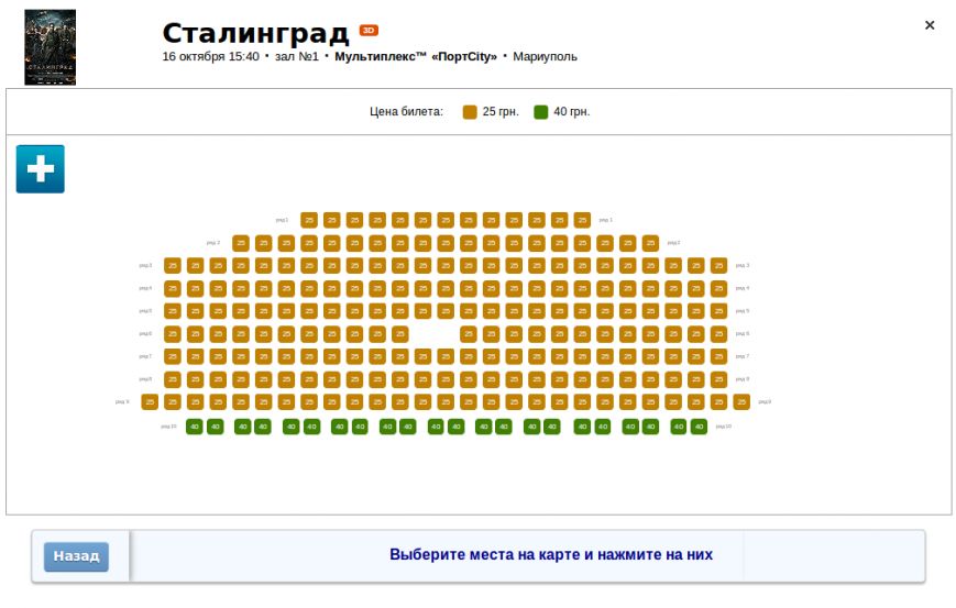 Шаг 3. В спокойной и комфортной обстановке вы выбираете удобное для вас время сеанса, после чего перед вами открывается схема зала: