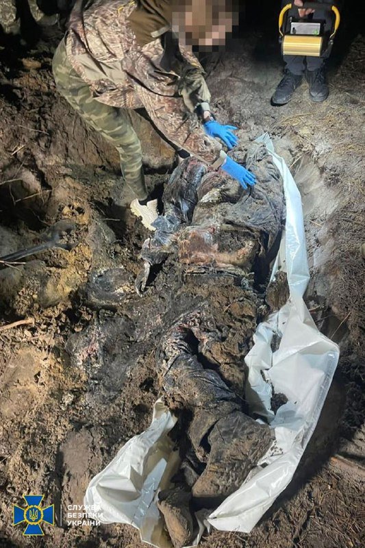 Щоб приховати злочин, рашист спільно зі співслужбовцями закопали тіло вбитого у лісі.