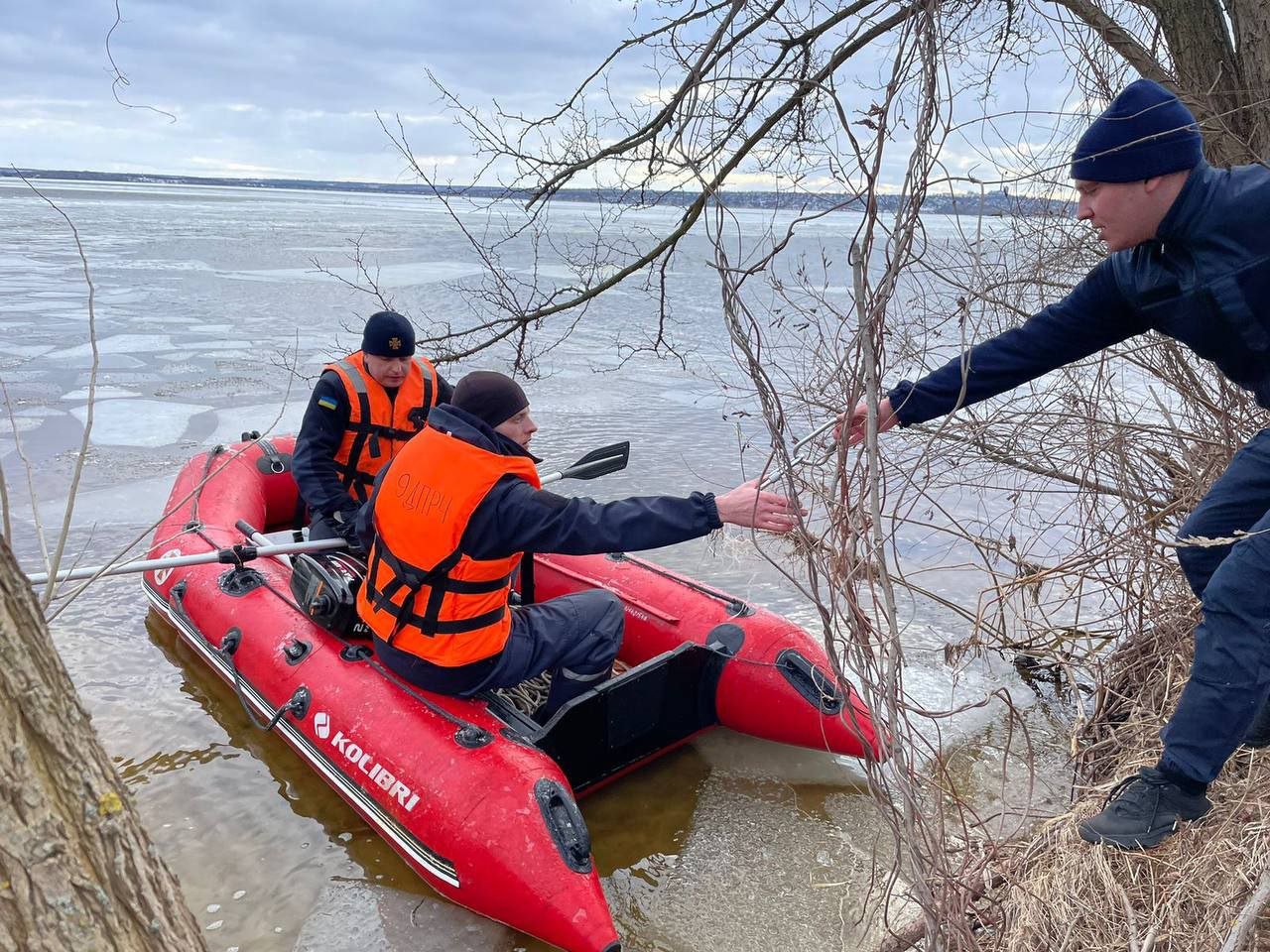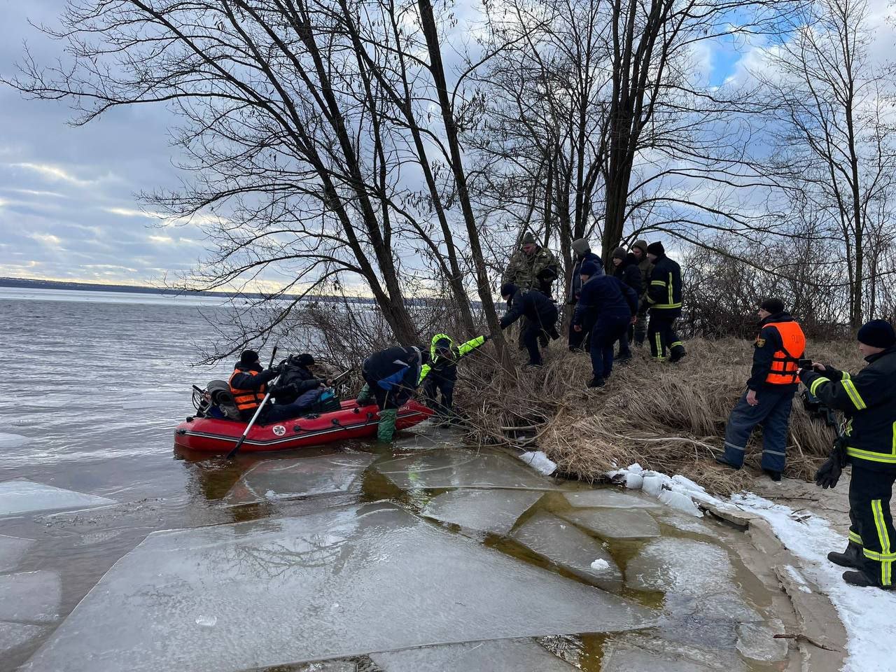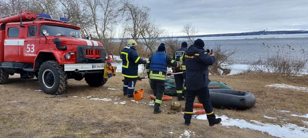 12-го лютого об 11:50 до служби порятунку звернулися очевидці, які побачили, що на річці Дніпро дві крижини з рибалками дрейфують від берега.