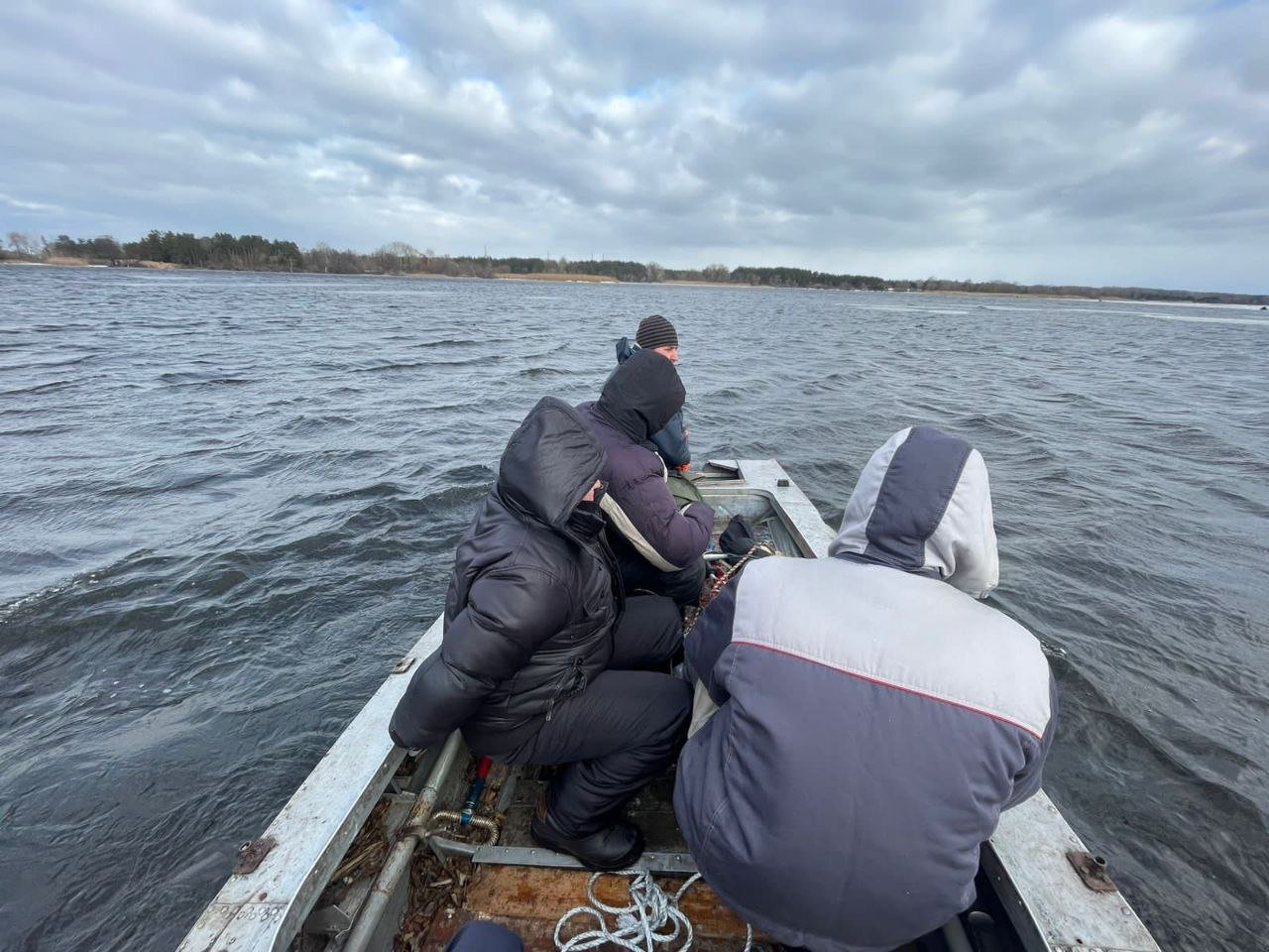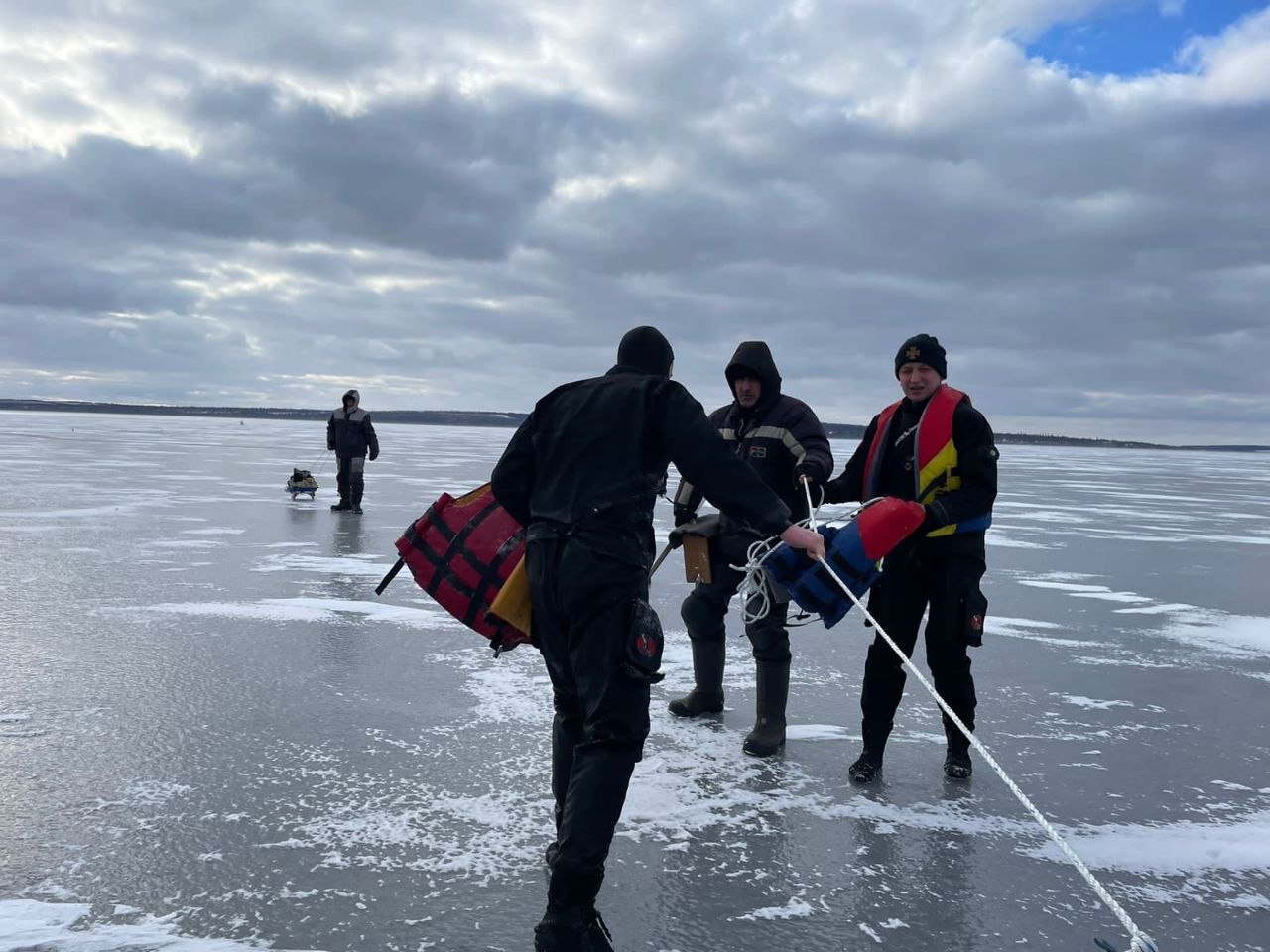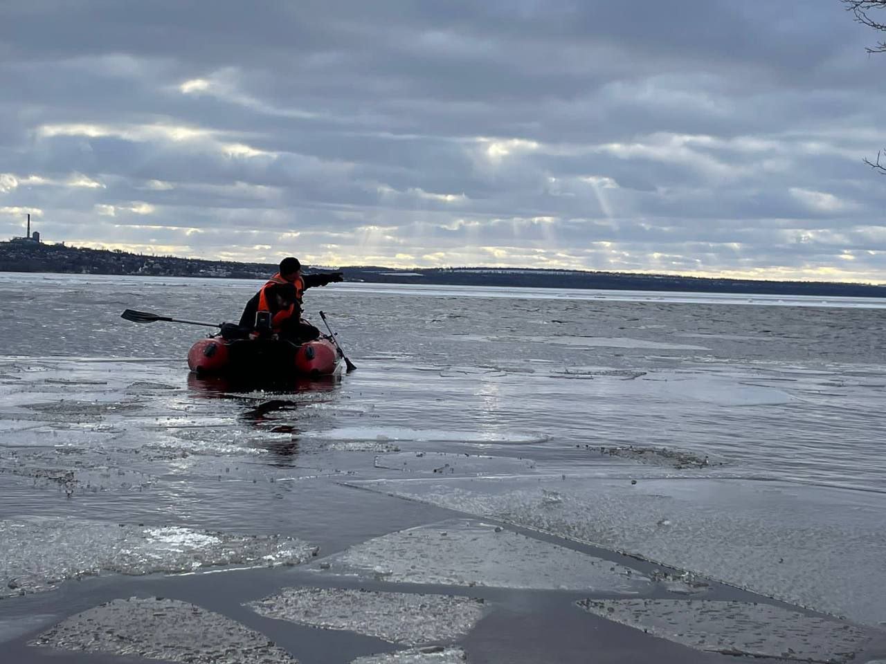 12-го лютого об 11:50 до служби порятунку звернулися очевидці, які побачили, що на річці Дніпро дві крижини з рибалками дрейфують від берега.