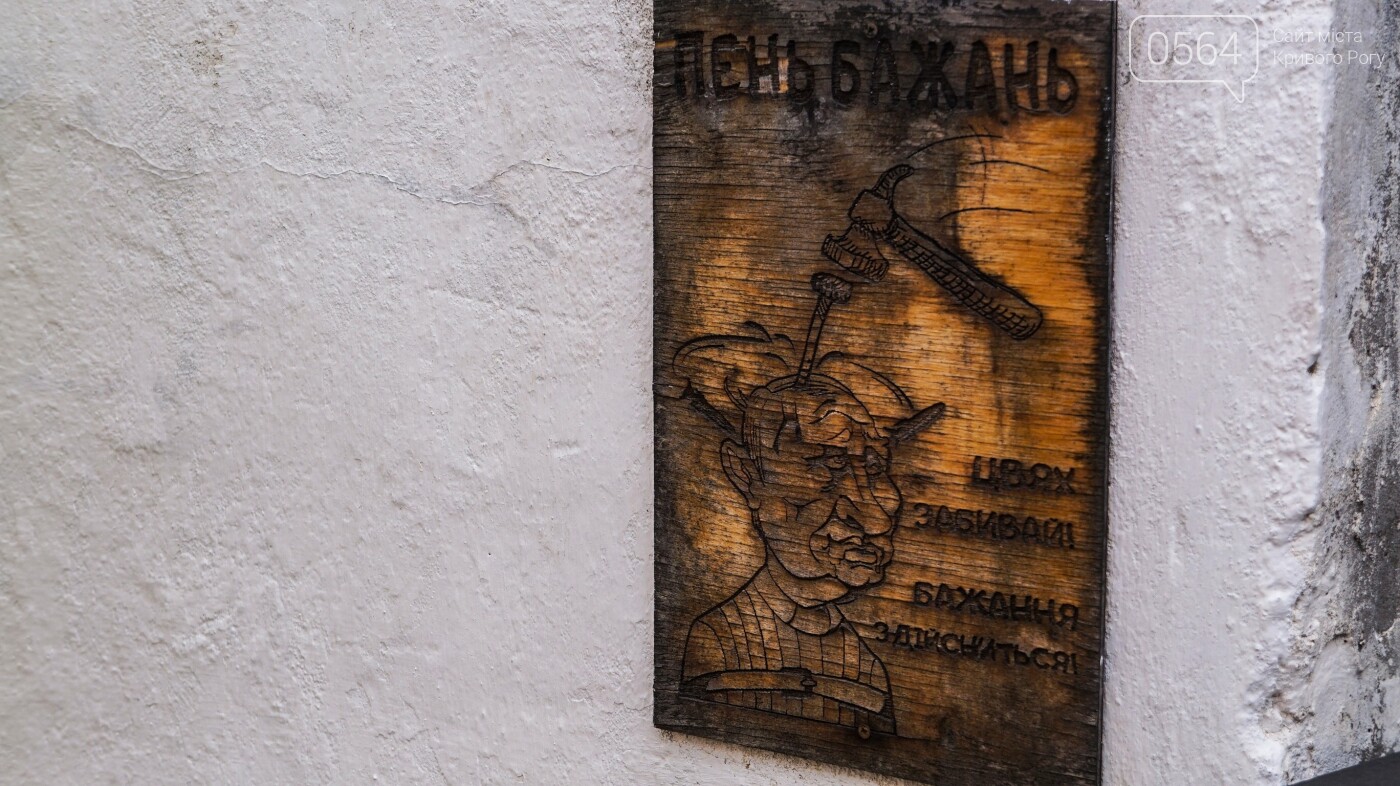 На цій вулиці є місце, де перехожі можуть загадати бажання. Якщо вдасться молотком забити цвях у пень, уявляючи, що це голова путіна, то бажання збудеться. Головне — щирість наміру й тверда рука.