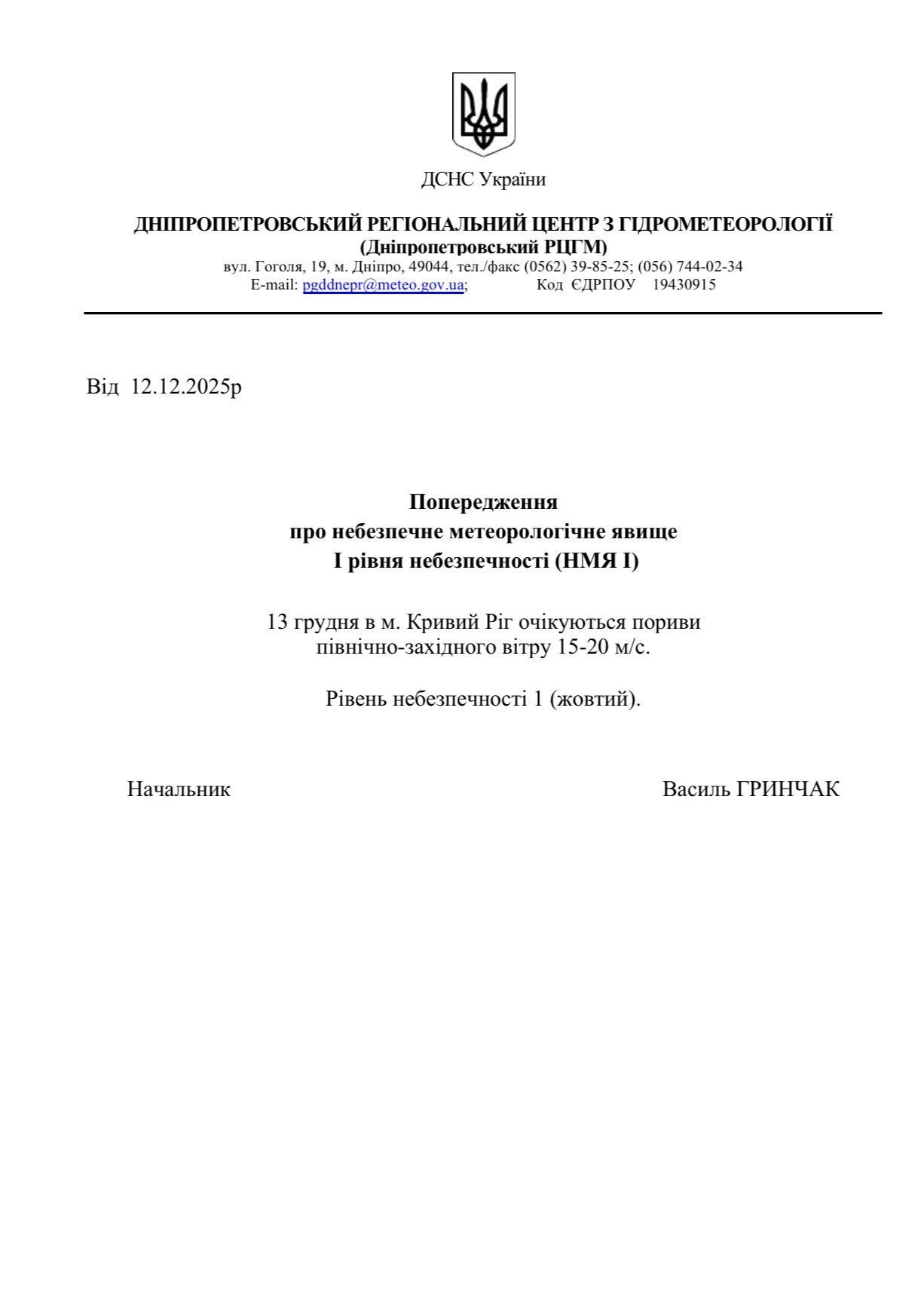 Водночас Дніпропетровський регіональний гідрометцентр попереджає про пориви вітру до 15 - 20 м/сек!