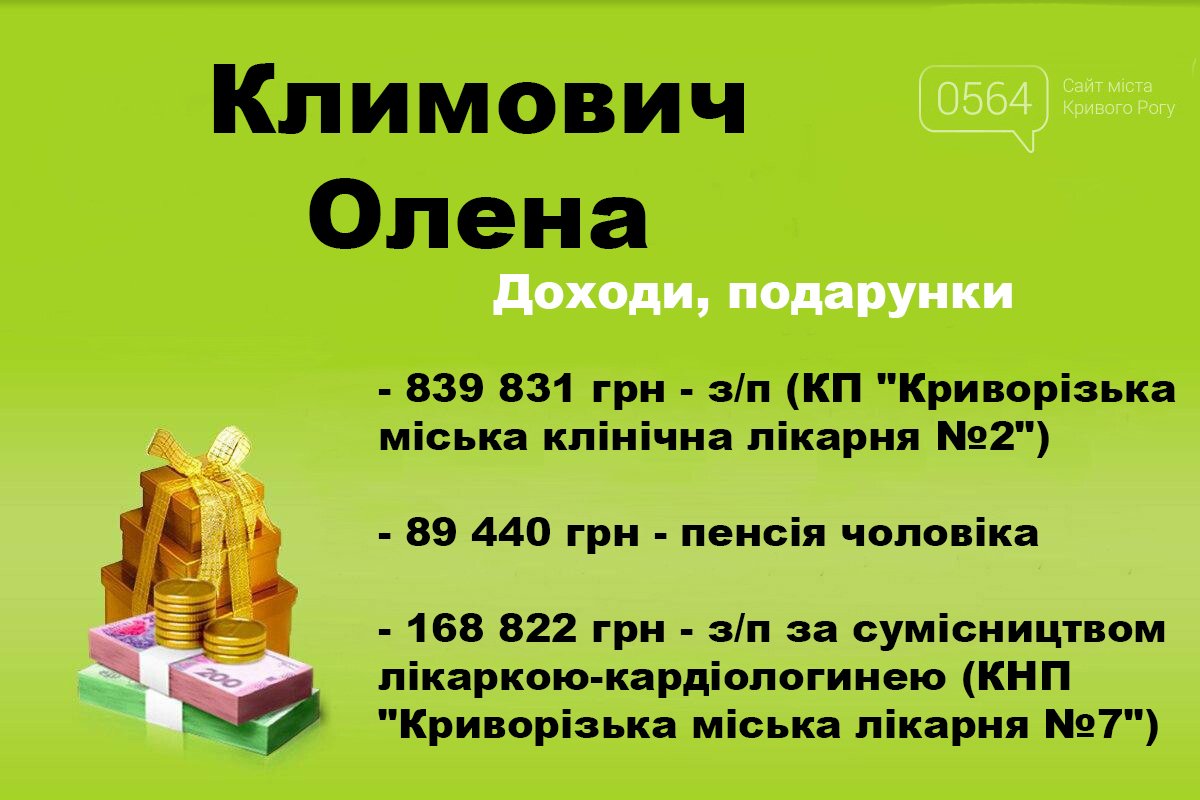 Чоловік Олени Климович з 14.12.2007 р. володіє автомобілем "AUDI 100" 1983 р.в.