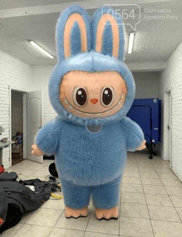 Надувной костюм Лабубу компании Слон изготовлен из мягкого, приятного на ощупь искусственного меха.