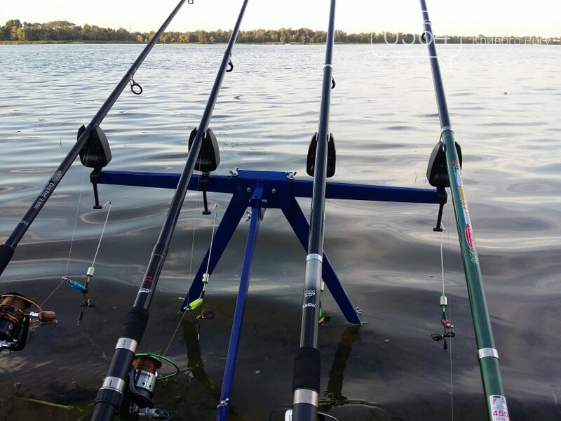 Розміри треноги фідерної (карпової) дозволяють рибачити на будь яке вудилище, будь якої довжини. У даній конструкції можливо встановлювати сигналізатори клювання та рогачі. На фото цієї триноги лежать карпові вудилища 4,5 метра, 3,9 метра і 3,6 метра з короповими 6000. Все дуже зручно, надійно та комфортно.