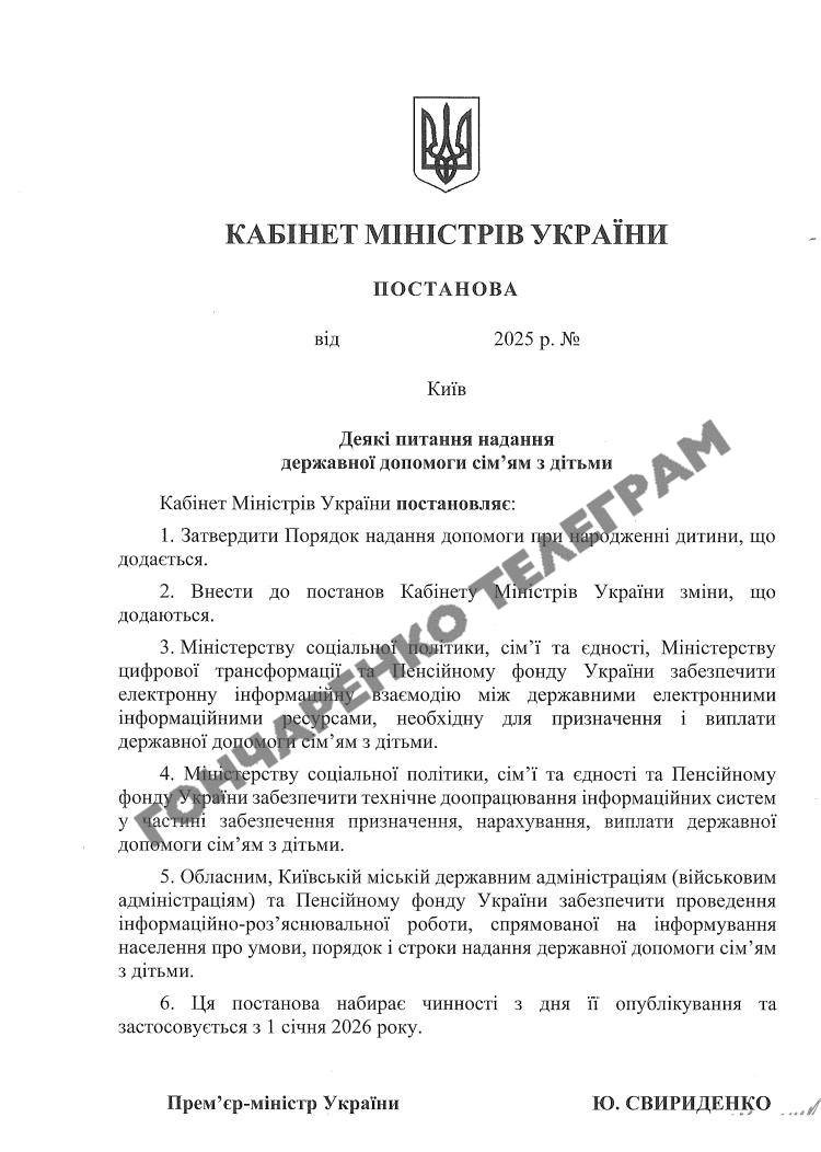 С 1 января 2026 г. в Украине вступит в силу Закон №4681-ІХ, направленный на усиление государственной поддержки семей с детьми и создание условий для сочетания отцовства с профессиональной деятельностью. Сегодня, 31 декабря, Кабмин утвердил Постановление, которым определен порядок предоставления помощи при рождении ребенка.